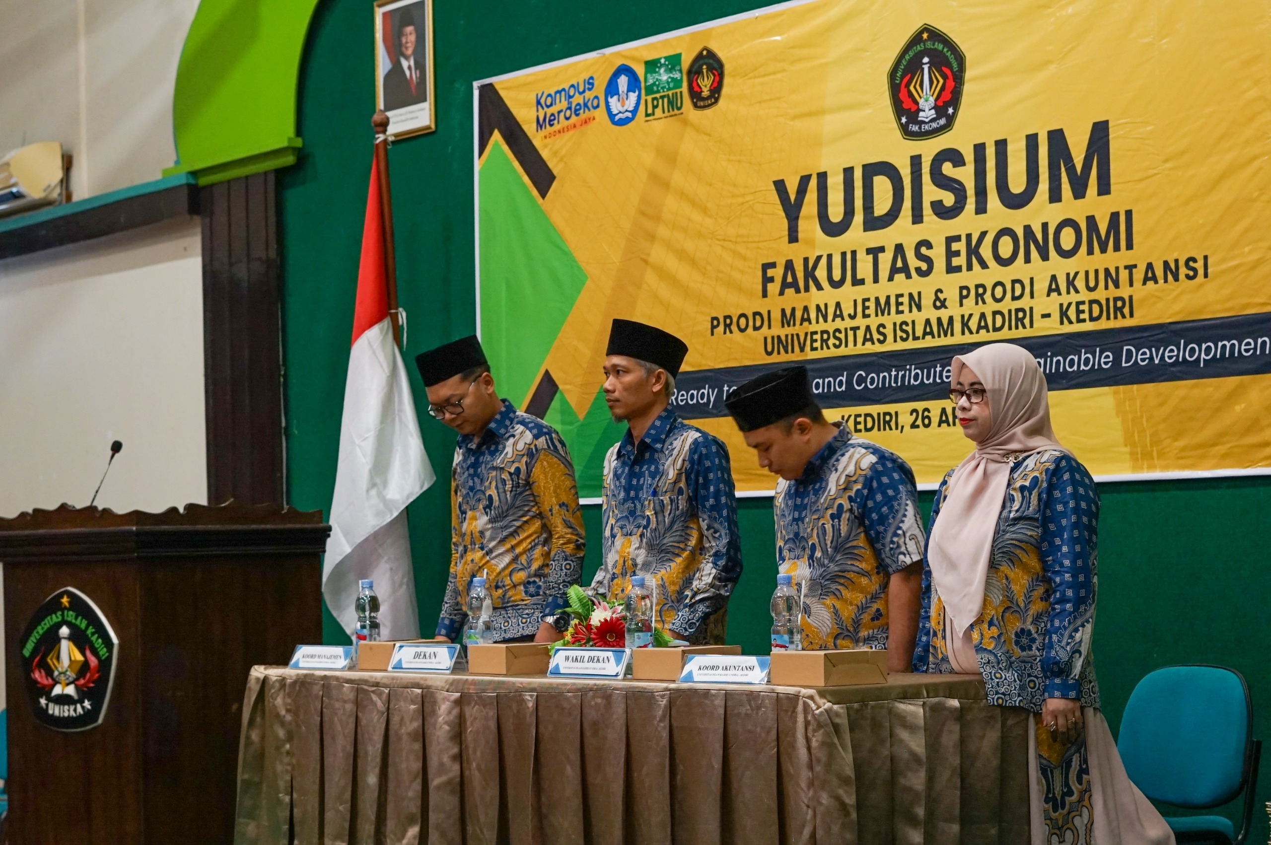 Kediri, 26 April 2025. Fakultas Ekonomi Universitas Islam Kadiri dengan penuh kebanggaan menyelenggarakan Yudisium sebagai bentuk apresiasi dan pengakuan resmi atas pencapaian akademik para mahasiswa yang telah menyelesaikan seluruh proses pendidikan. Acara ini menjadi momen yang penuh haru dan kebanggaan, di mana para lulusan tidak hanya merayakan keberhasilan akademis, tetapi juga mempersiapkan diri untuk mengabdikan ilmu yang diperoleh kepada masyarakat, bangsa, dan agama. Dengan semangat kebersamaan dan nilai-nilai islami yang menjadi landasan UNISKA, Yudisium ini diharapkan menjadi awal dari perjalanan baru para lulusan sebagai insan ekonomi yang profesional, berintegritas, dan berdaya saing tinggi di era global. Peserta Yudisium kali ini diikuti oleh 107 mahasiswa yang terdiri dari 79 mahasiswa program studi manajemen dan 28 mahasiswa program studi akuntansi. Untuk mahasiswa terbaik program studi manajemen diraih oleh Dewi Nurika Sari Luthviana dengan IPK 3.96 dengan masa studi 3 tahun 11 bulan dan mahasiswa terbaik program studi akuntansi diraih oleh Erlikawati dengan IPK 3.88 dengan masa studi 3 tahun 11 bulan.