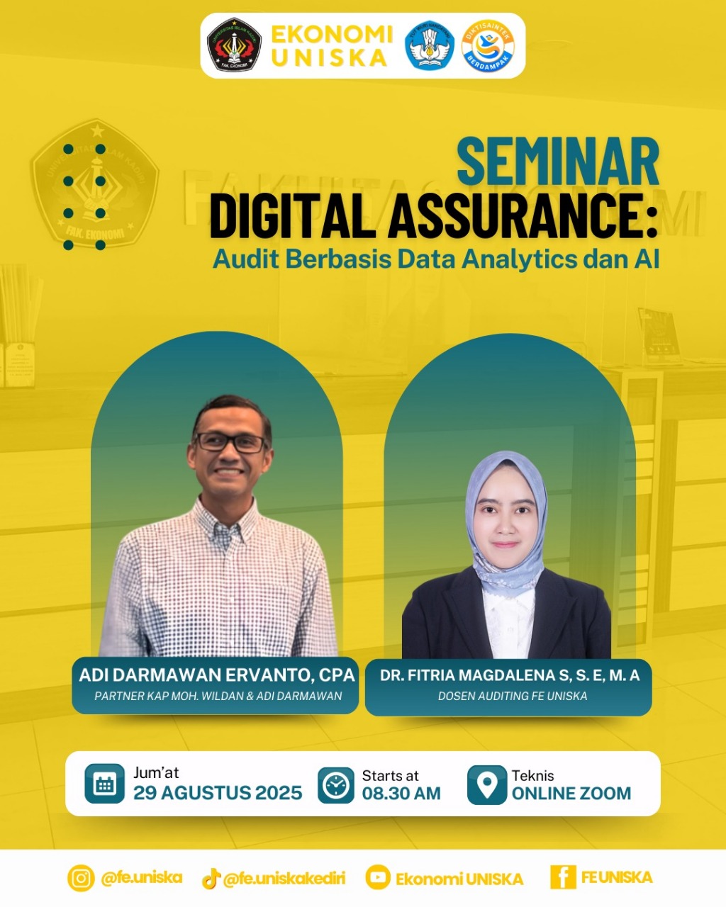 Kediri, 29 Agustus 2025. Dunia akuntansi terus bergerak mengikuti perkembangan teknologi. Audit yang dahulu berbasis manual kini beralih pada pendekatan digital, data analytics, hingga pemanfaatan kecerdasan buatan. Menjawab tantangan zaman ini, Fakultas Ekonomi Universitas Islam Kadiri (FE UNISKA) Kediri menggelar Workshop Peningkatan Pembelajaran Mata Kuliah Digital Audit.